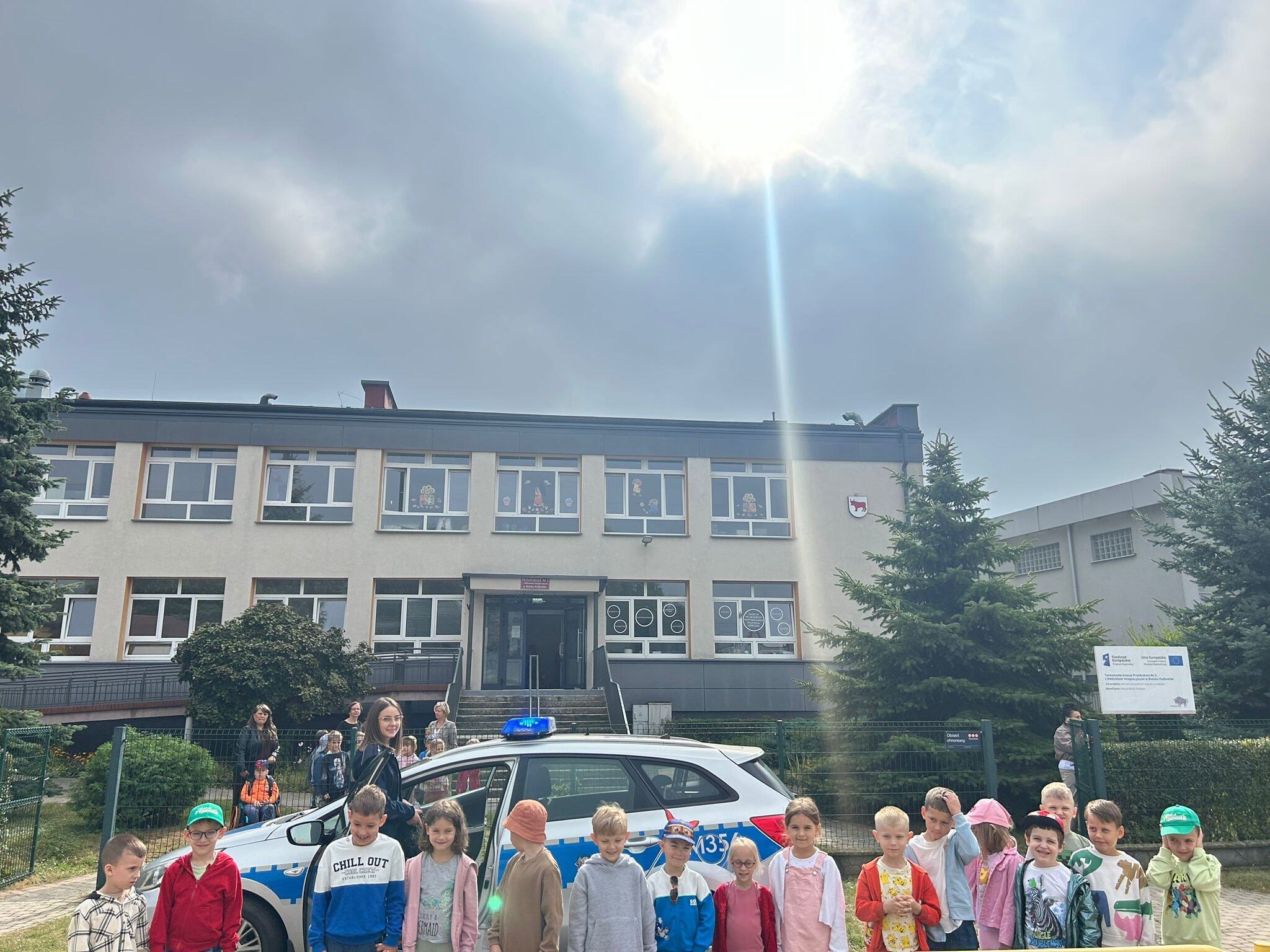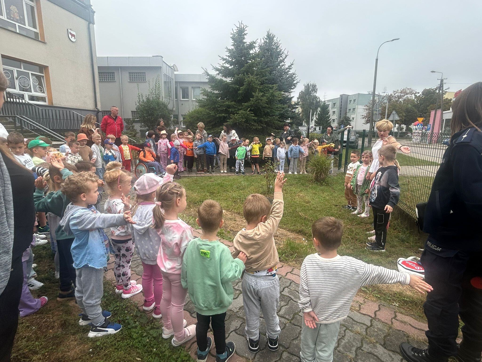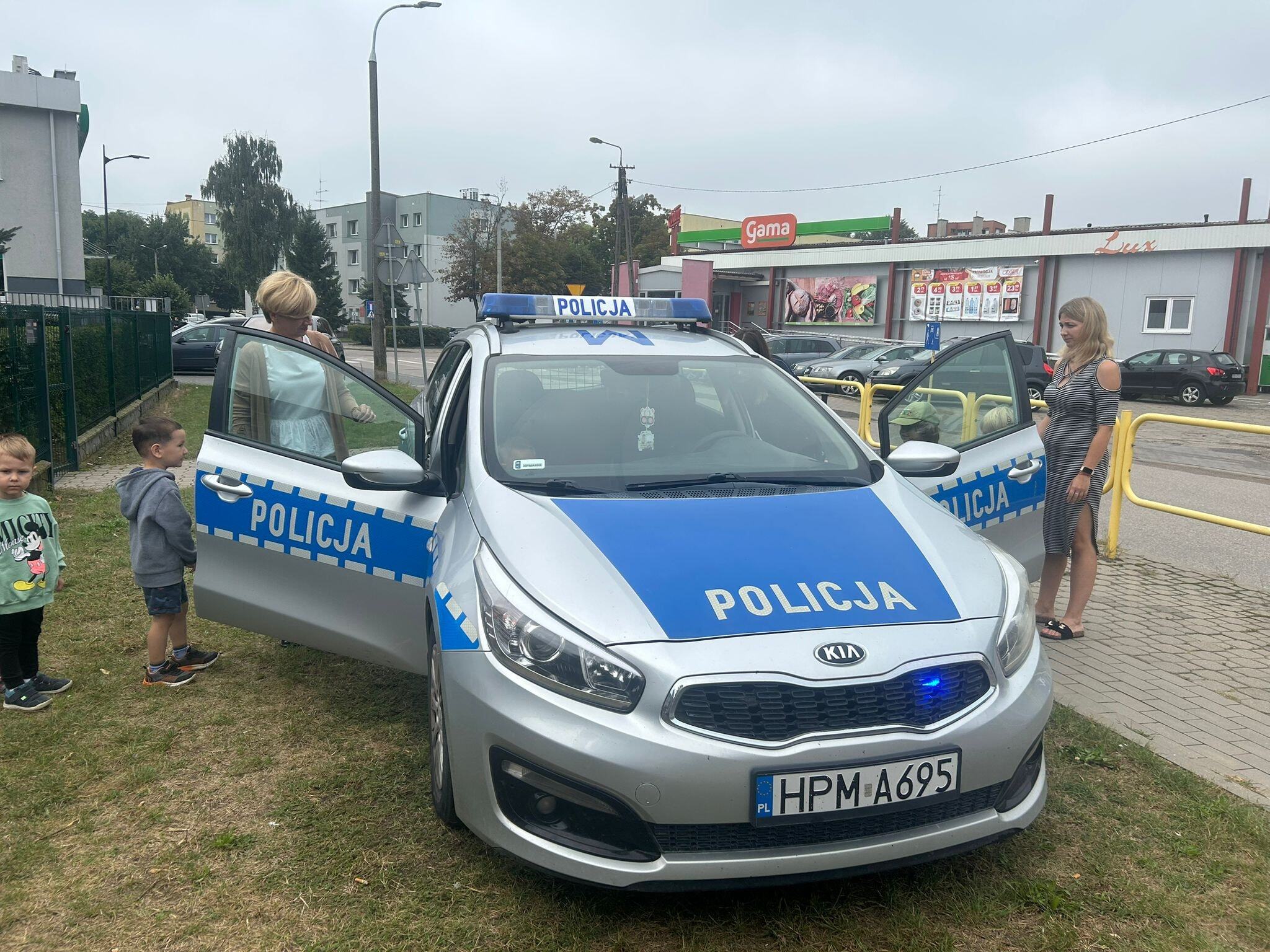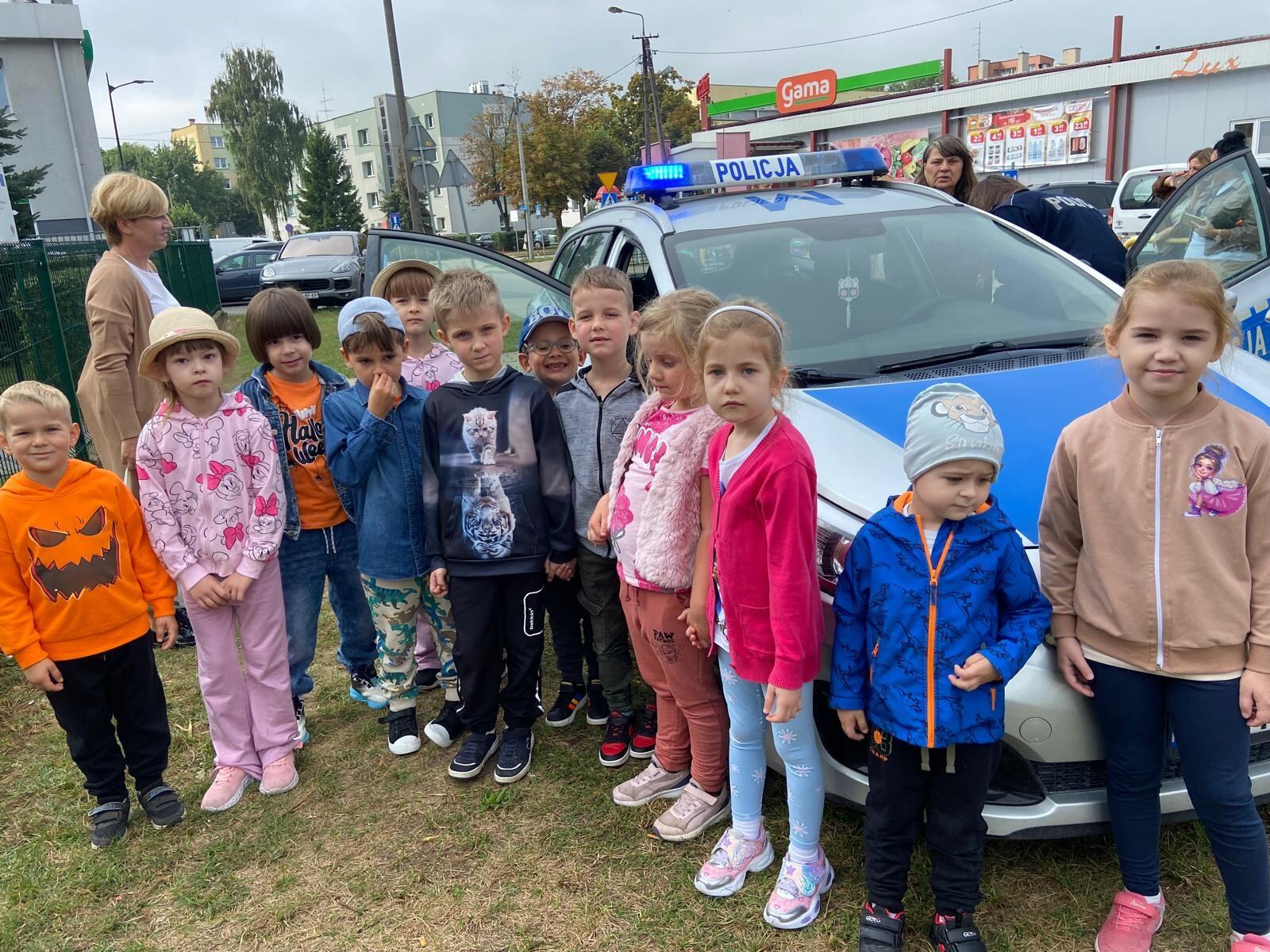 W ramach realizacji tematu kompleksowego "Bezpieczna droga do Przedszkola" dnia 16 września 2022r. nasze Przedszkole odwiedziły Panie policjantki - Pani Sylwia ,Monika oraz Natalia. Rozmawialiśmy na temat konieczności przestrzegania przepisów ruchu drogowego, zasad bezpiecznego przechodzenia przez drogę, utrwaliliśmy znajomość niektórych znaków drogowych. Dzieci zobaczyły prawdziwe policyjne kajdanki, które zaprezentowały panie. Zapoznały się z ubiorem. Panie Policjantki zwróciły uwagę dzieci na kolor umundurowania oraz przybliżył im na czym polega praca Policjanta. Największą jednak atrakcją był samochód policyjny, który zaparkował na terenie naszego przedszkola. Dzieci miały okazję wsiąść i obejrzeć radiowóz. Najwięcej radości wzbudzało włączanie sygnałów alarmowych. To był dzień, który na długo pozostanie w pamięci. Dziękujemy za przybycie!