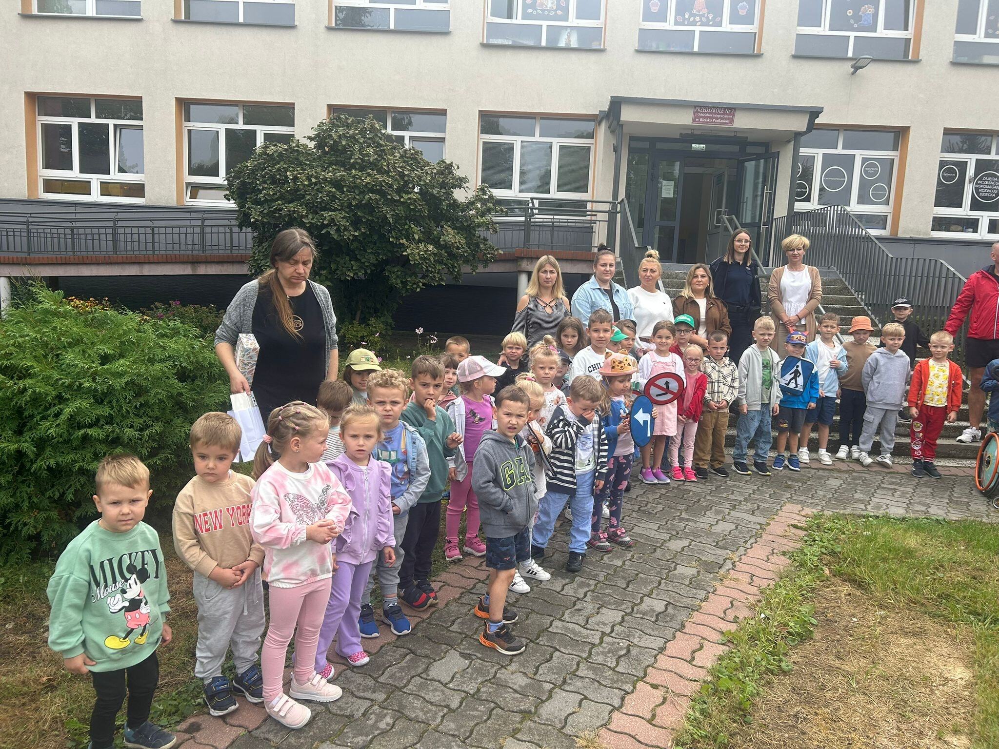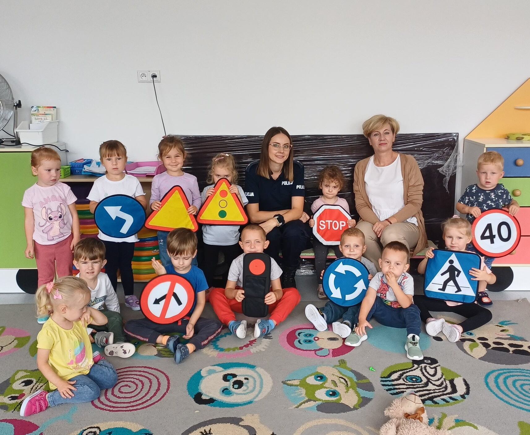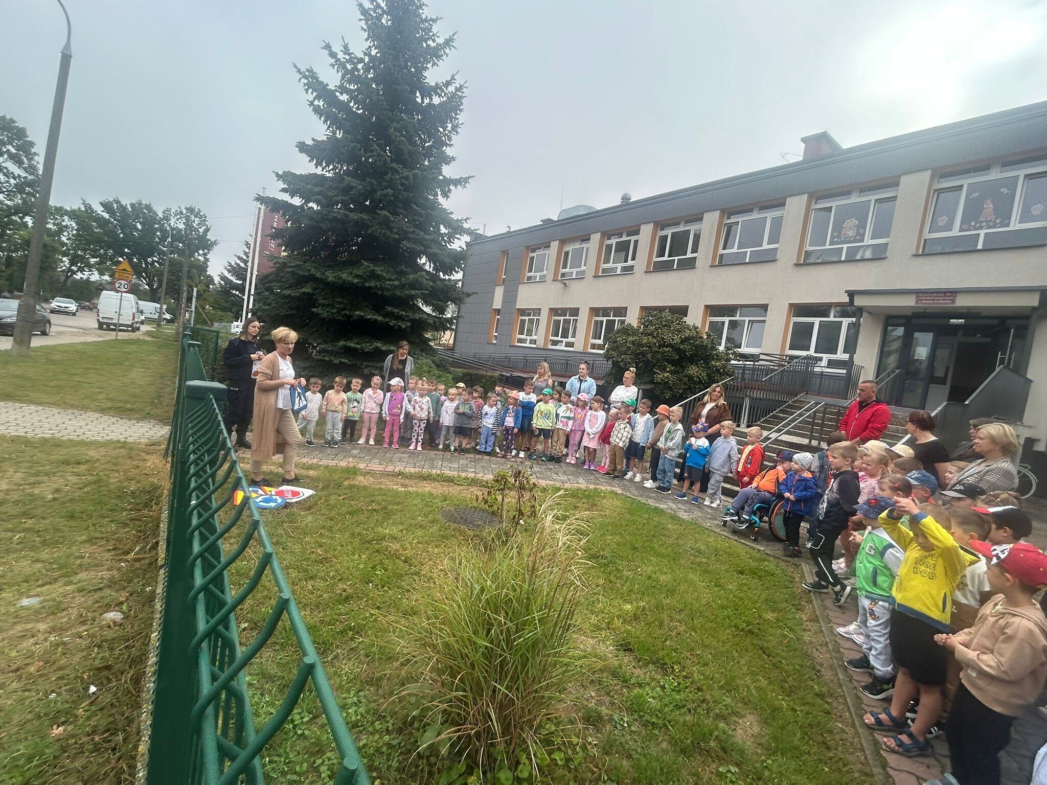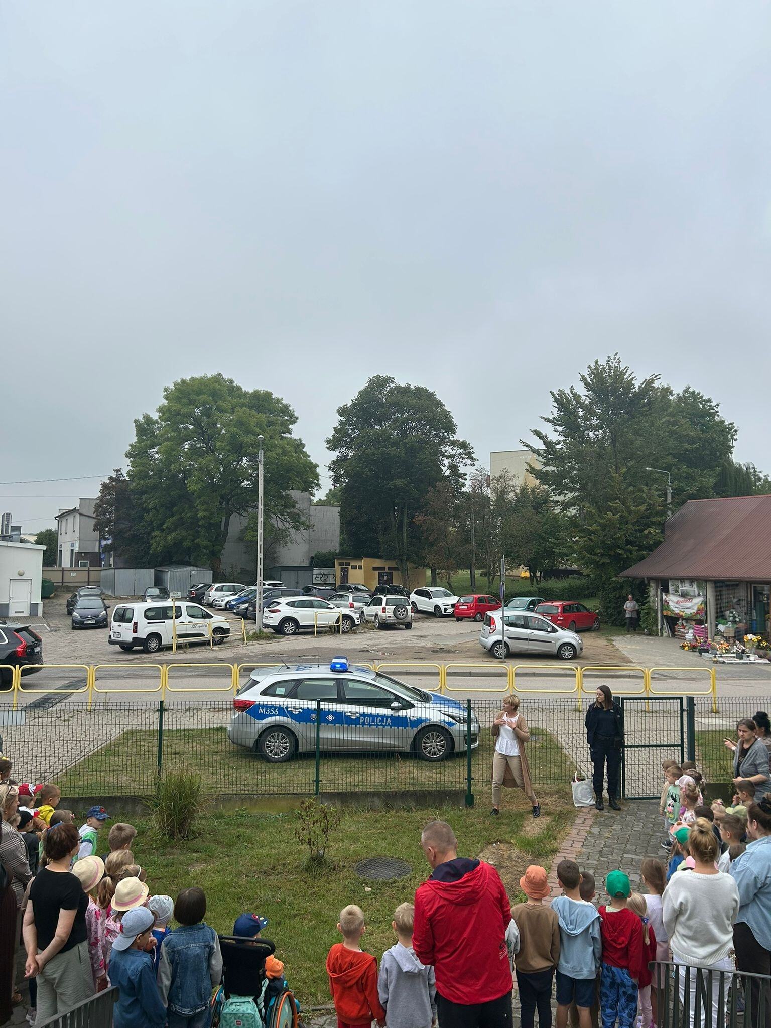 W ramach realizacji tematu kompleksowego "Bezpieczna droga do Przedszkola" dnia 16 września 2022r. nasze Przedszkole odwiedziły Panie policjantki - Pani Sylwia ,Monika oraz Natalia. Rozmawialiśmy na temat konieczności przestrzegania przepisów ruchu drogowego, zasad bezpiecznego przechodzenia przez drogę, utrwaliliśmy znajomość niektórych znaków drogowych. Dzieci zobaczyły prawdziwe policyjne kajdanki, które zaprezentowały panie. Zapoznały się z ubiorem. Panie Policjantki zwróciły uwagę dzieci na kolor umundurowania oraz przybliżył im na czym polega praca Policjanta. Największą jednak atrakcją był samochód policyjny, który zaparkował na terenie naszego przedszkola. Dzieci miały okazję wsiąść i obejrzeć radiowóz. Najwięcej radości wzbudzało włączanie sygnałów alarmowych. To był dzień, który na długo pozostanie w pamięci. Dziękujemy za przybycie!