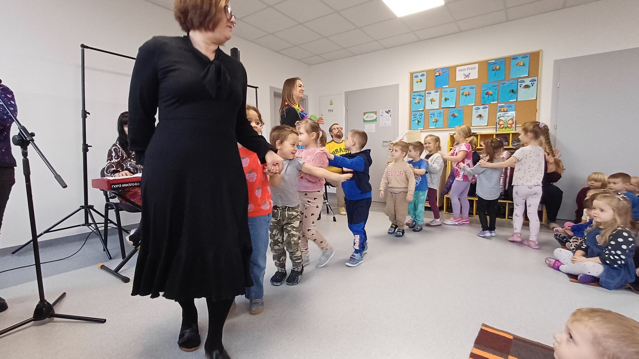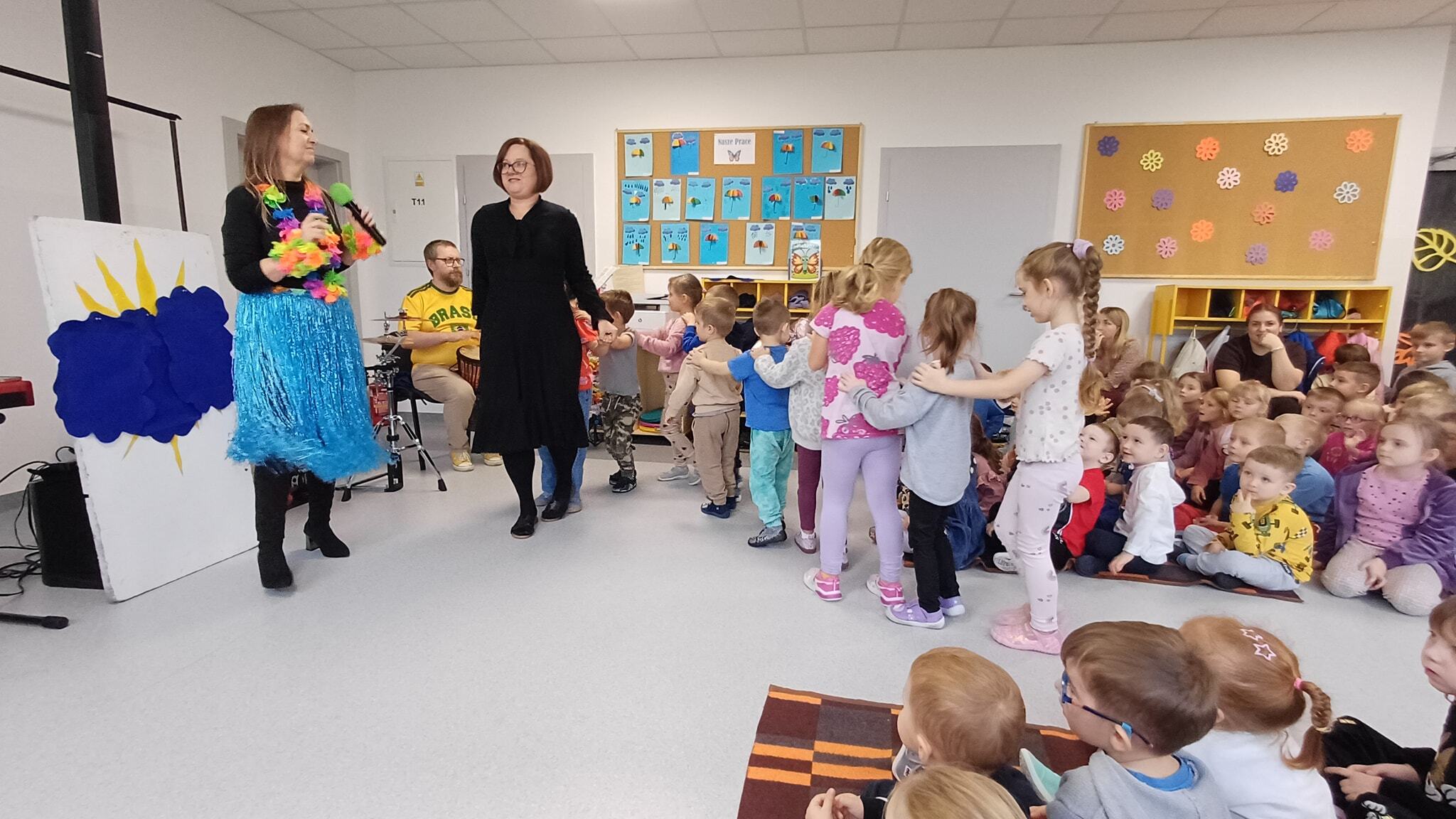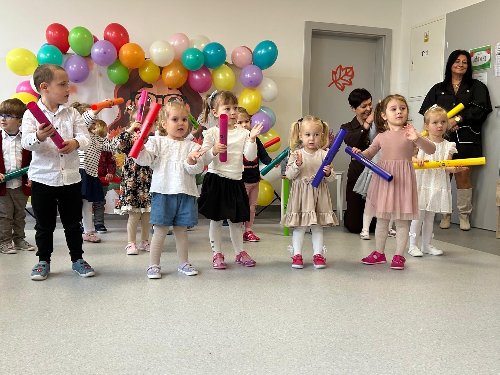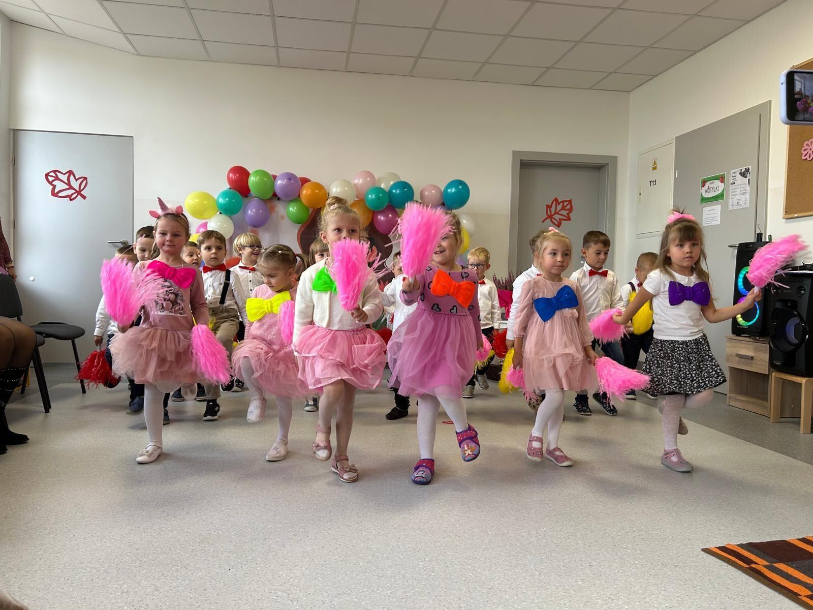 Ten wyjątkowy, jesienny dzień uświetnił program artystyczny w wykonaniu dzieci z grupy Motyle. Starszaki wierszem, piosenką dziękowały za trud wkładany w dzieło edukacji najmłodszego pokolenia. W scence teatralnej poszukiwały odpowiedzi na pytanie: która pani jest najlepsza? Odpowiedź okazała się prosta - oczywiście WSZYSTKIE! Życzenia złożone przez Panią Dyrektor wlały w serca pracowników przedszkola dużo otuchy, dodały sił do podejmowania wyzwań w bieżącym roku szkolnym.