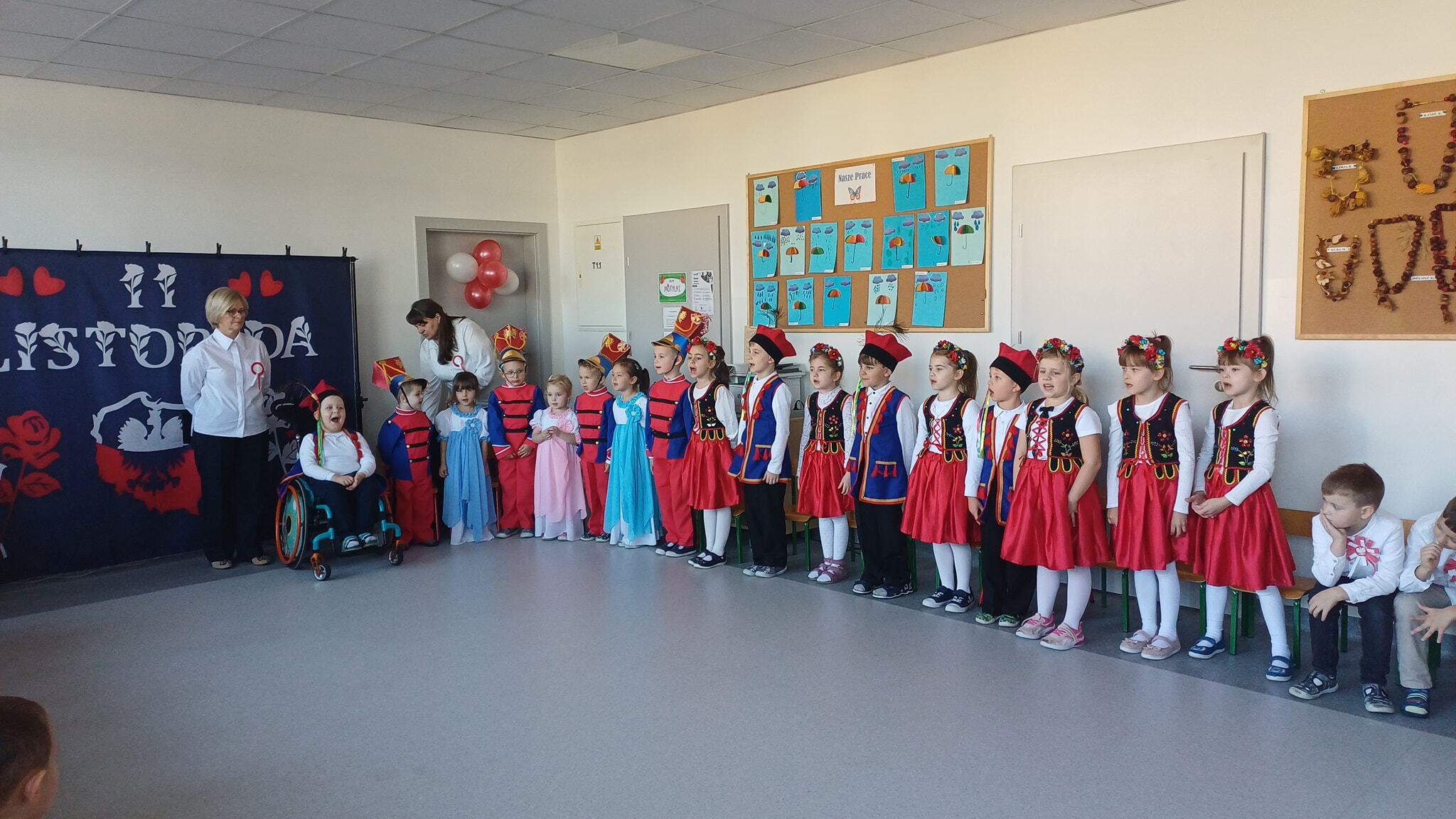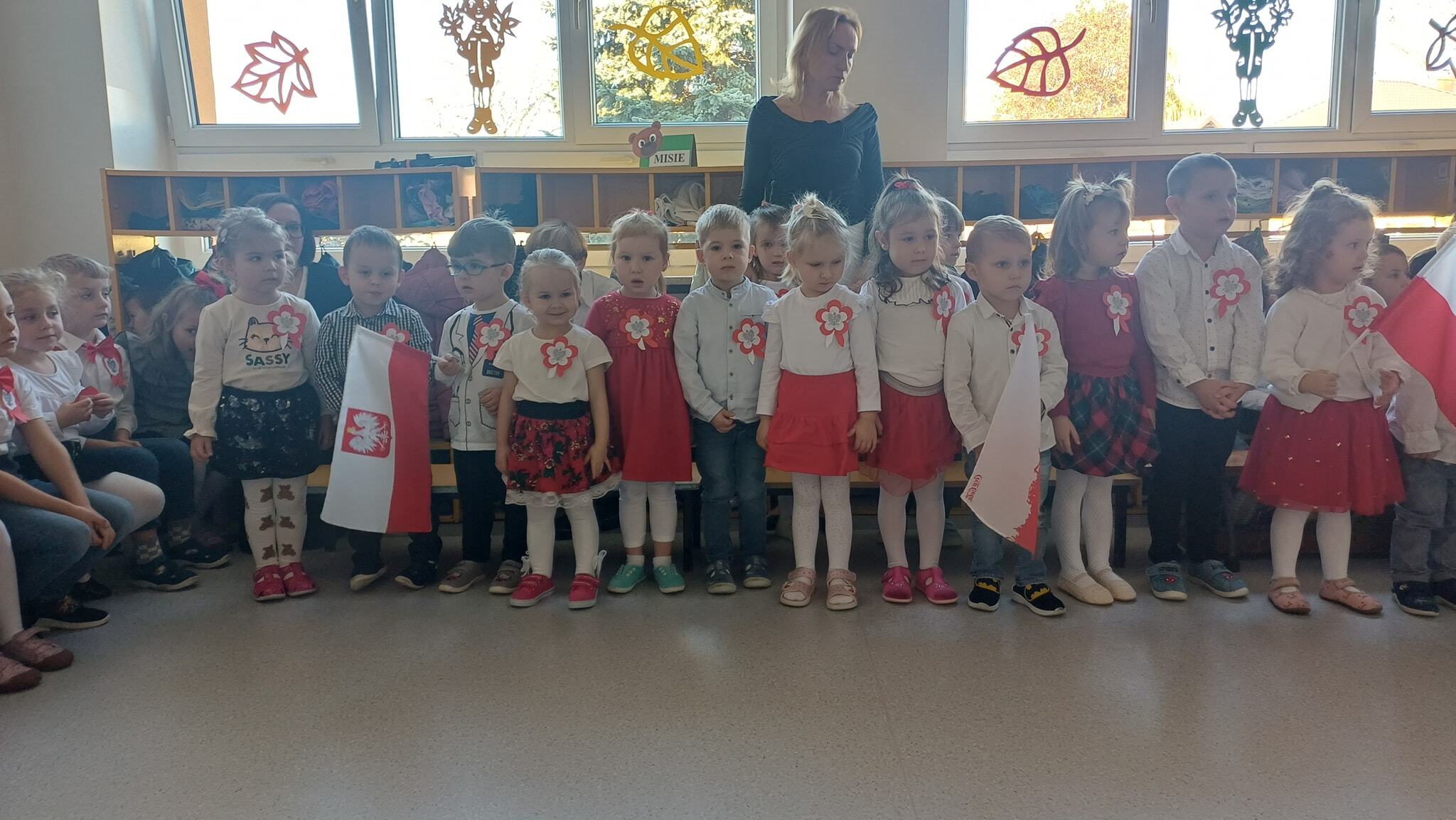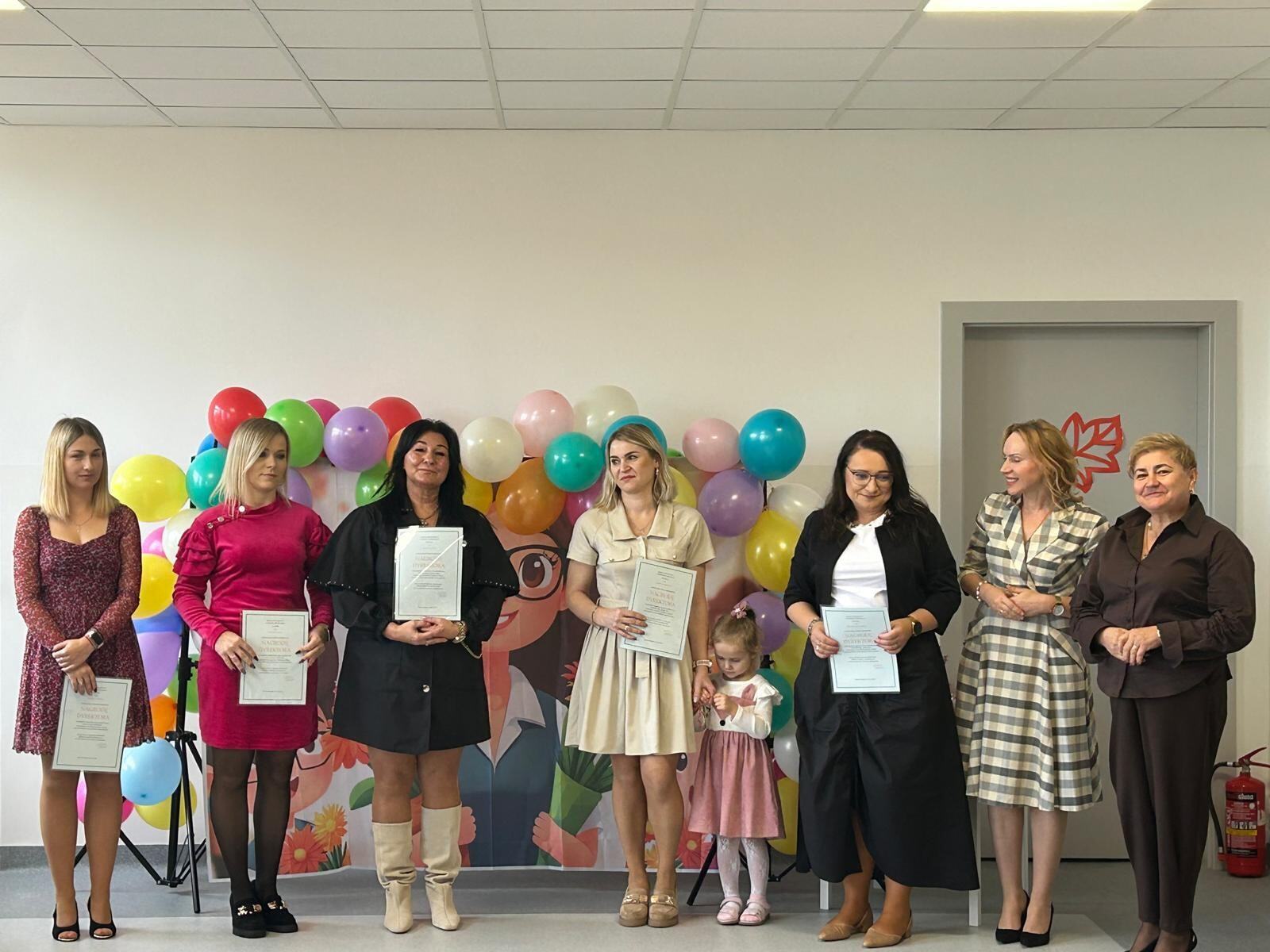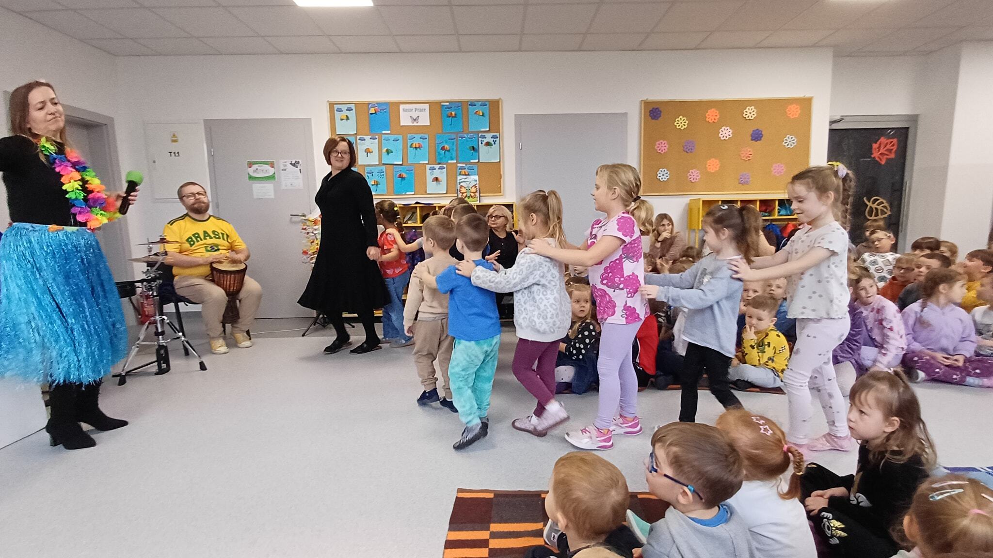 Ten wyjątkowy, jesienny dzień uświetnił program artystyczny w wykonaniu dzieci z grupy Motyle. Starszaki wierszem, piosenką dziękowały za trud wkładany w dzieło edukacji najmłodszego pokolenia. W scence teatralnej poszukiwały odpowiedzi na pytanie: która pani jest najlepsza? Odpowiedź okazała się prosta - oczywiście WSZYSTKIE! Życzenia złożone przez Panią Dyrektor wlały w serca pracowników przedszkola dużo otuchy, dodały sił do podejmowania wyzwań w bieżącym roku szkolnym.