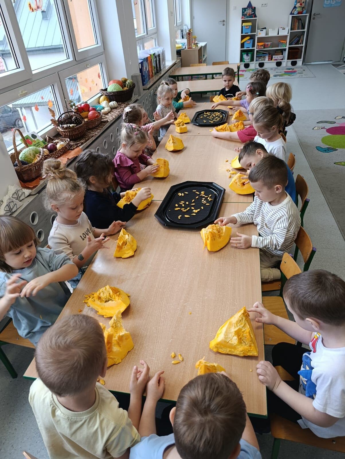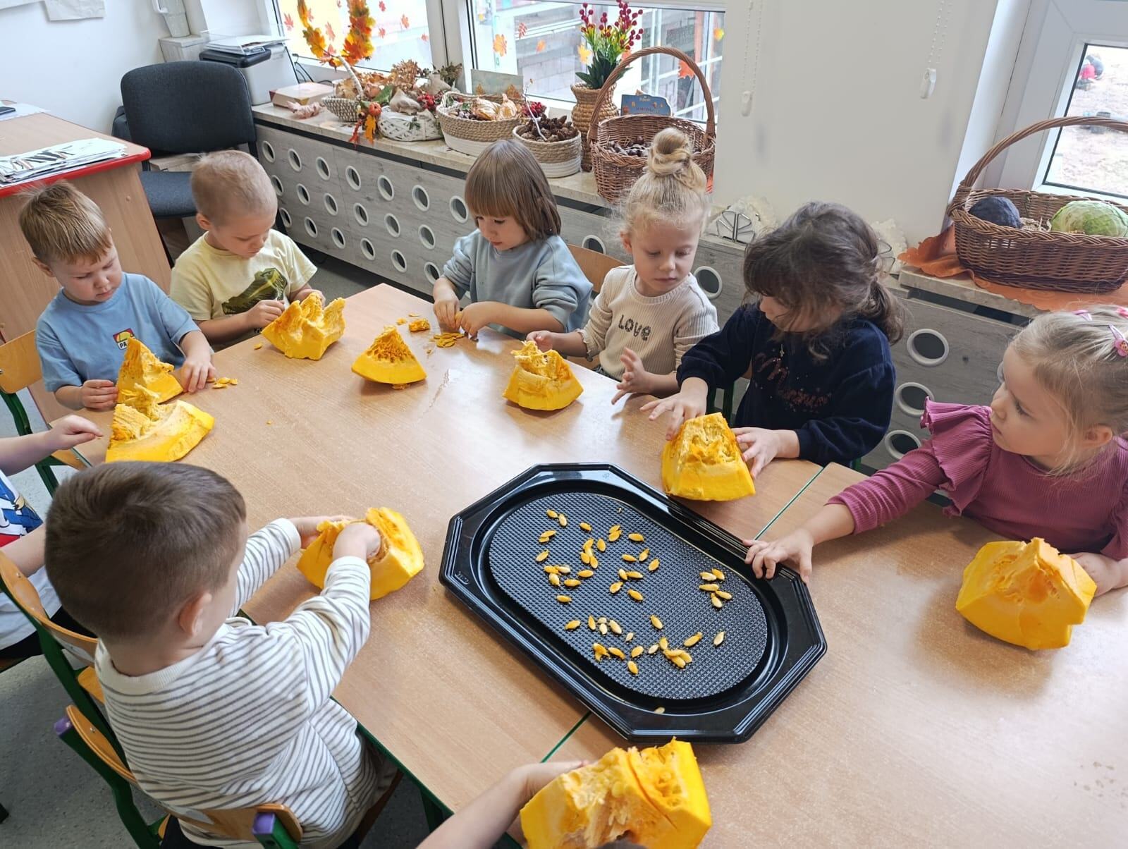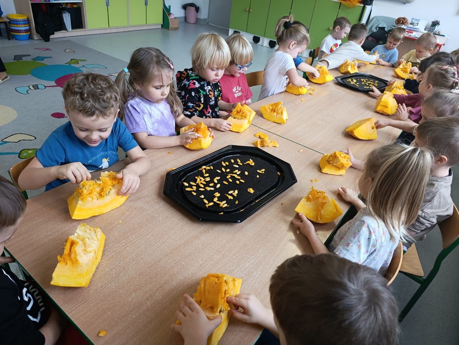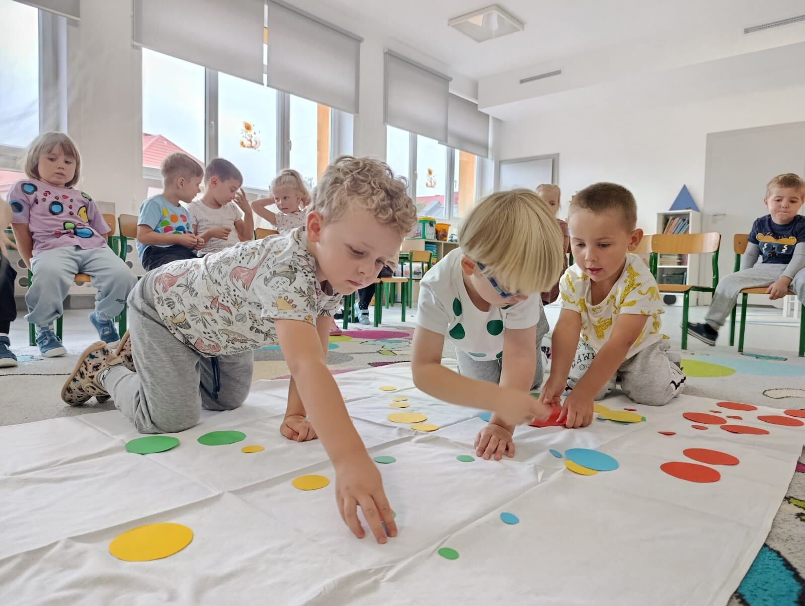 Jako czterolatki nie jesteśmy już maluszkami – stajemy się coraz bardziej samodzielni i odważni. Razem uczymy się dzielić zabawkami, budować wielkie wieże z klocków i nawiązywać pierwsze, ważne przyjaźnie. Nasza sala to miejsce, gdzie wyobraźnia nie ma granic, a każdy orzeszek wiedzy, który wspólnie zdobędziemy, chowany jest do „dziupli” naszej pamięci.